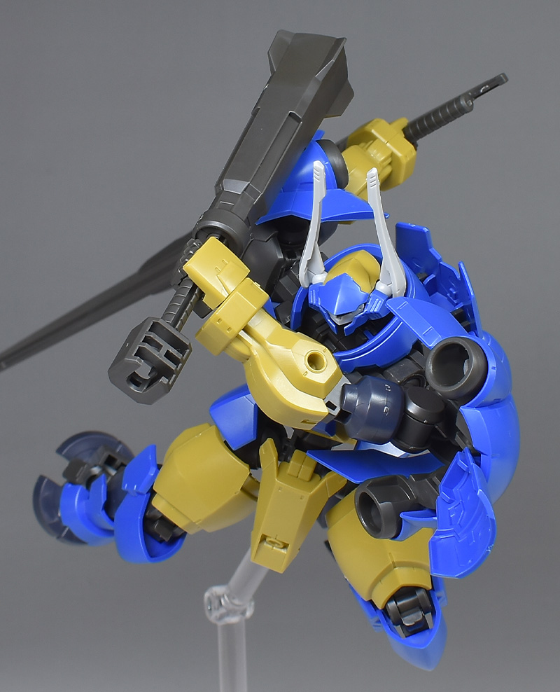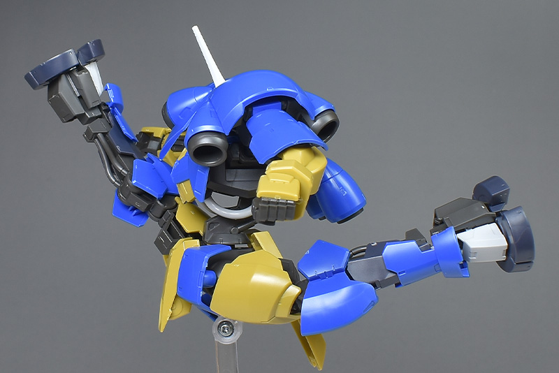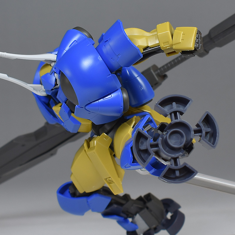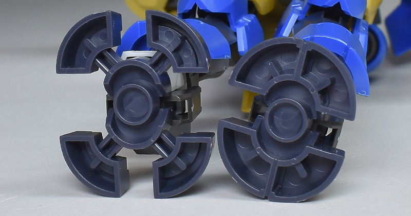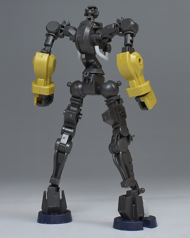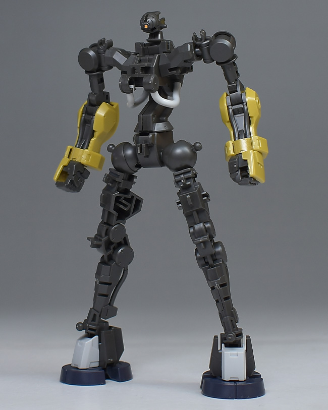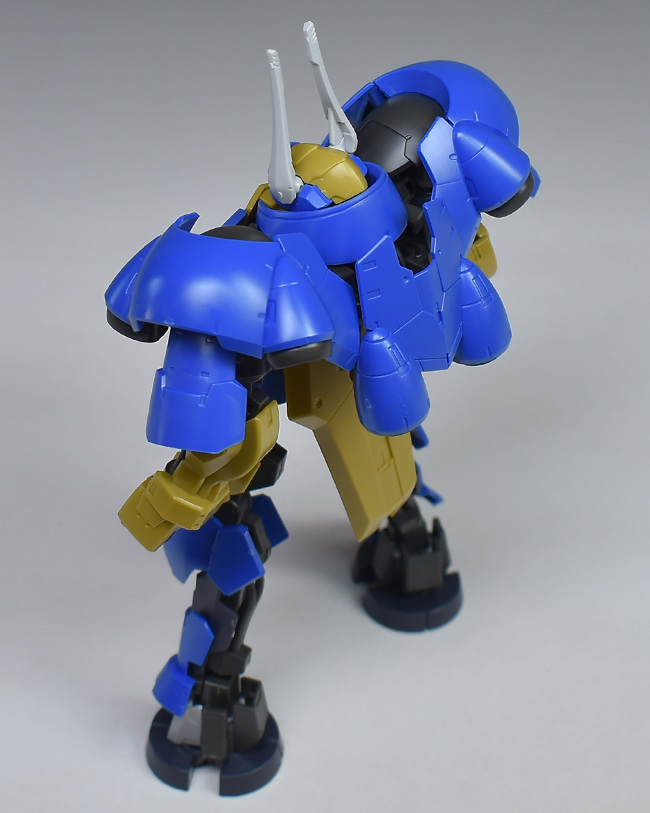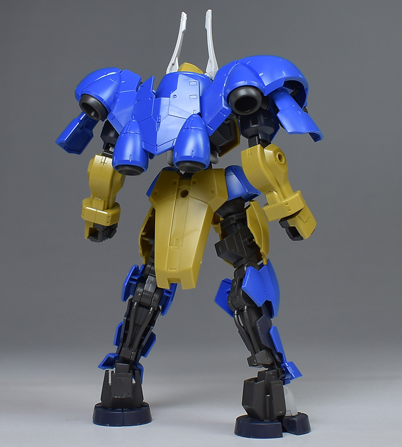 成形色はブルーとダークイエローを基調に、頭部アンテナや腹部動力パイプ、脚甲などにライトグレーを配色。その他、内部や関節、ヴァルキュリアバスターソードなどはダークグレー成形色での再現となっています。