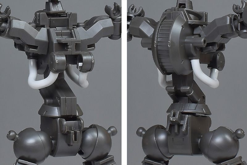 胴体内部フレームはグリムゲルデと全く同じ。グレイズに似た胸部周りや背部の1基リアクター、腹部動力パイプなどがメカニカルに造形されています。
