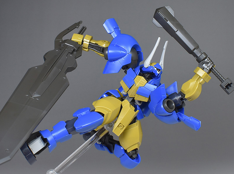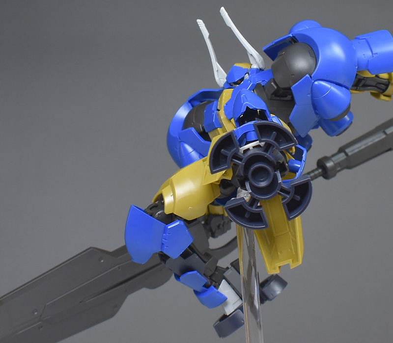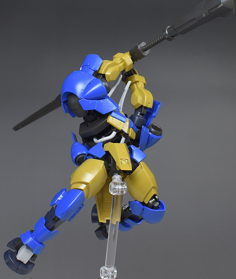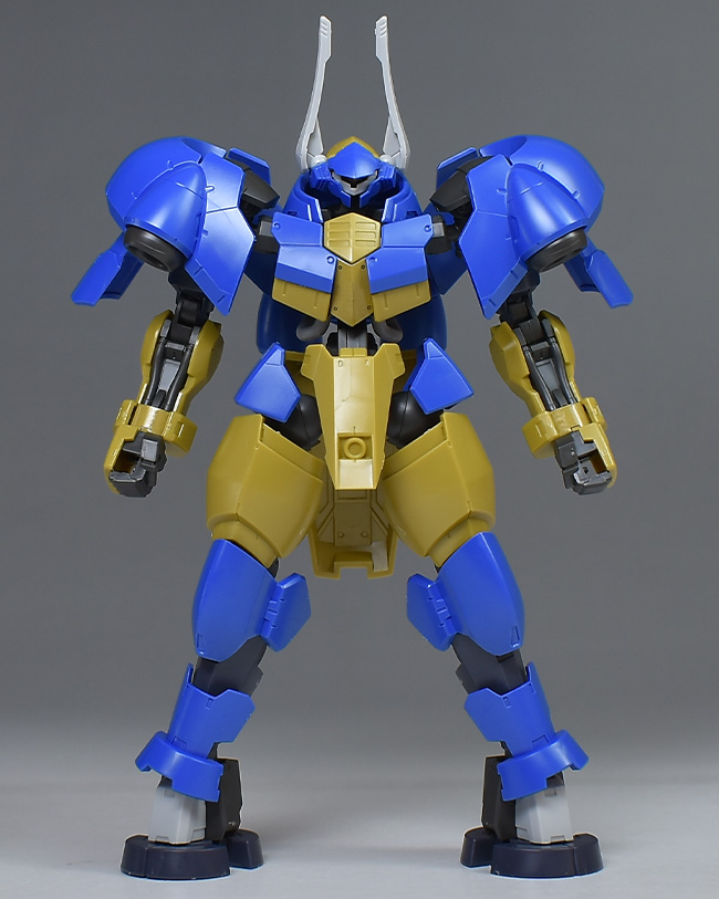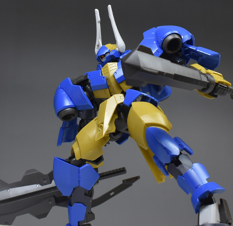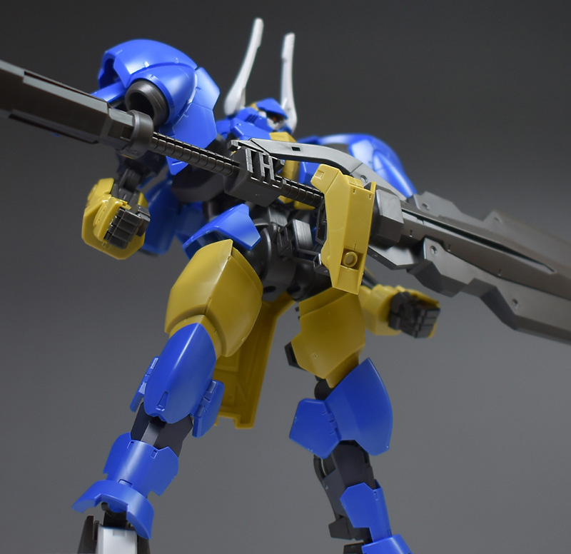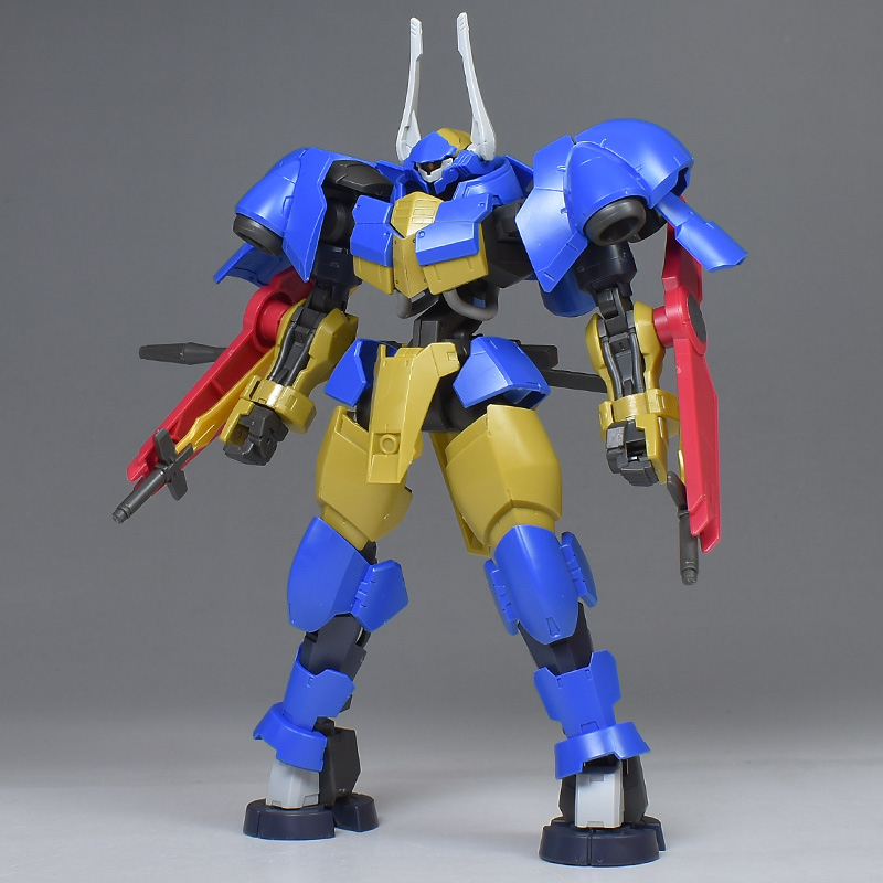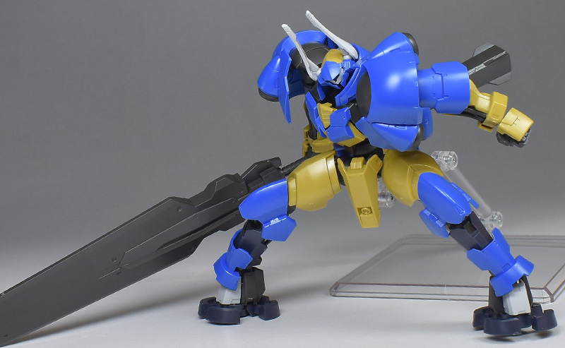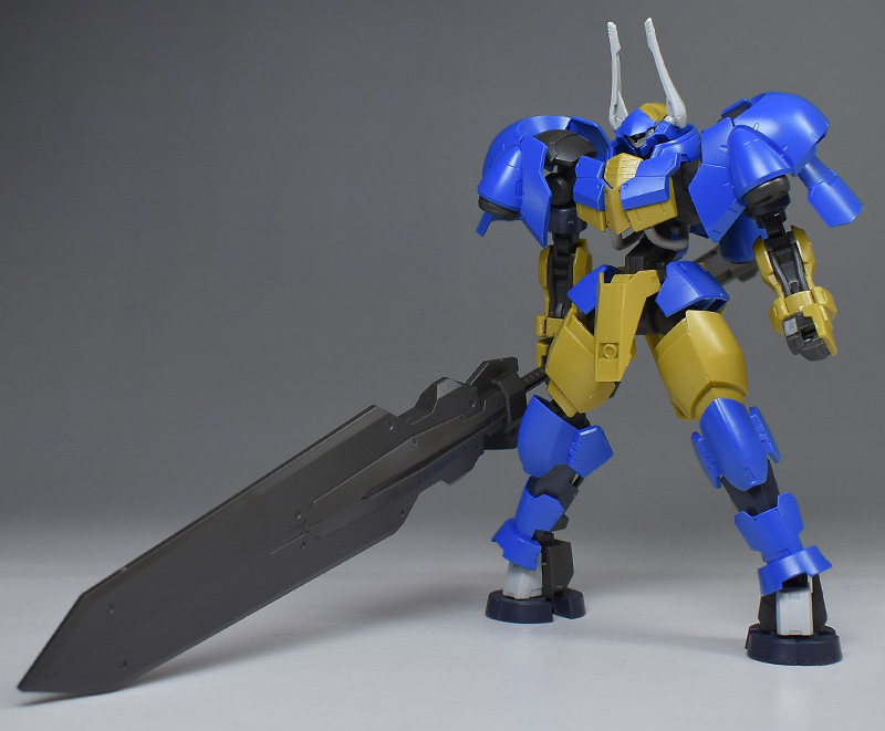 2016年2月に発売されたHGグリムゲルデの内部フレーム(ヴァルキュリア・フレーム)を流用しつつ、闘牛をイメージしたような重厚な機体外装、ヴァルキュリアバスターソードが新規造形で再現されています。