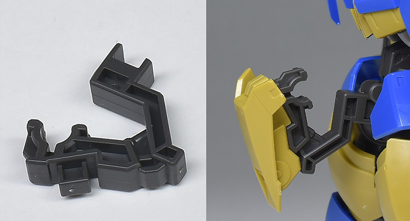 ショルダーアーマー。グリムゲルデ改修機を思わせるドーム状の装甲が特徴的に造形されています。簡単なパーツ構成ながらも合わせ目ができない仕様になっています。