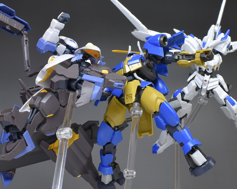 同作品に登場するHGガンダムバルバトスルプス、HGガンダムヴィダールと並べて。ガンダムタイプとは違ったヒール感、禍々しさがあって良いですね。