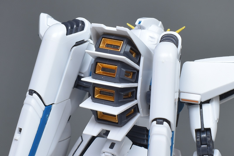 バックパック中央部。角型ダクトや白いフィンなどが特徴的に造形。角形ダクトはエクストラフィニッシュの金属質パーツや色違いのパーツによって細かく造形、色分けされています。