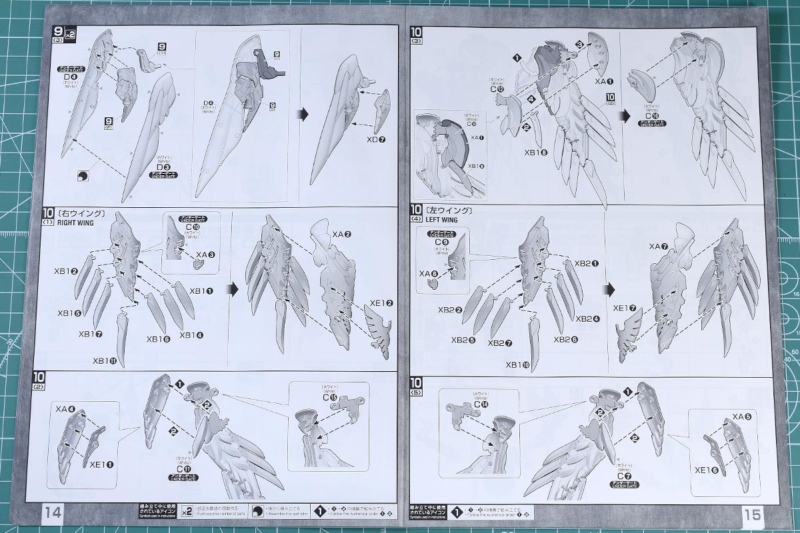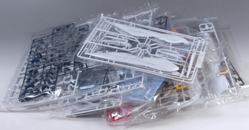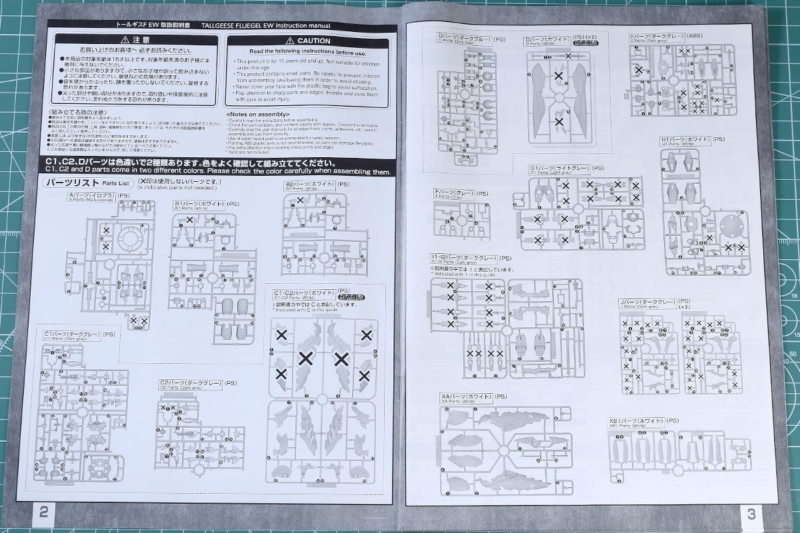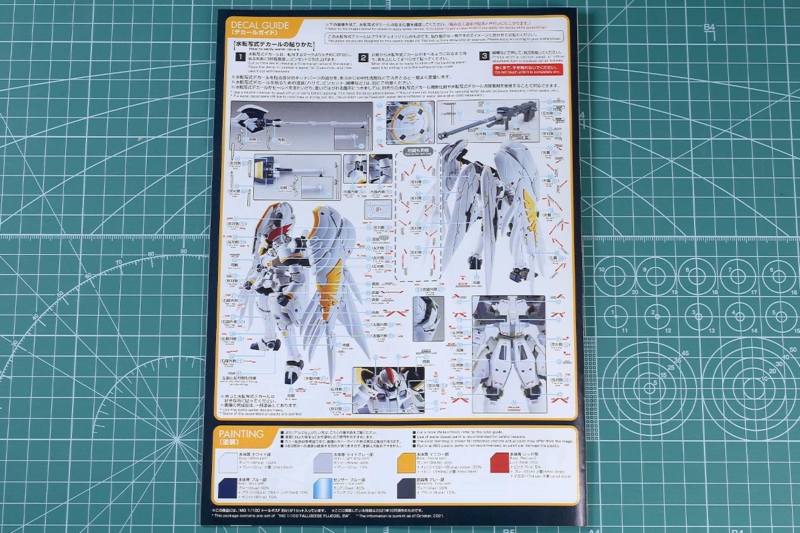 カラーガイド。色種はまずまず、調色もまずまず・・・?といった感じ。各部がパーツで細かく色分けされていますし、合わせ目もドーバーガンくらい?なので塗装はしやすいと思います。ウイングバインダーや外装各部に丸モールドがあるので、その当たりの塗り分けが必要ですが、ハセガワのつや消し黒フィニッシュシートをポンチでくり抜いて貼り付けるのも手かと。