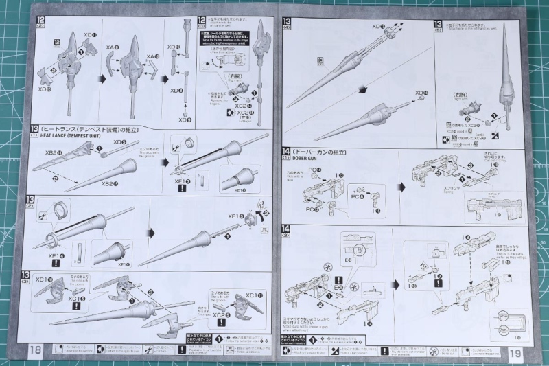 ↑XDランナー。くすみのあるホワイト成型色で、ヒートランス(テンペスト装備)、ヒートハルバード、背部ウイングバインダーパーツなど。