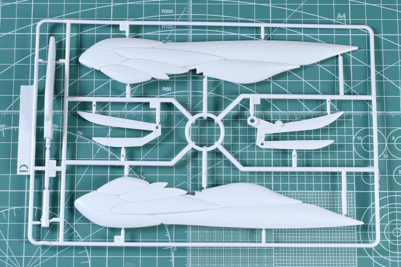 ↑Dランナー。ホワイト成型色のウイングパーツです。KPS素材。MGウイングガンダムゼロVer.Kaからの流用で同じものが2枚あります。アンダーゲート仕様。