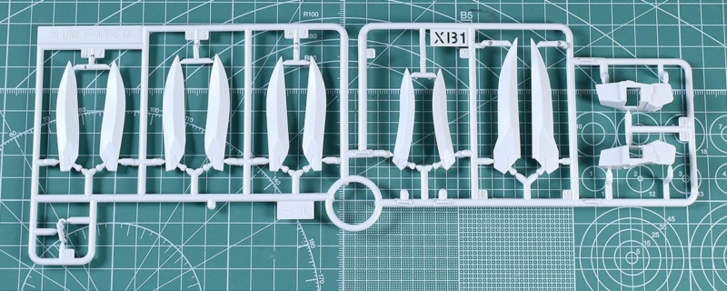 ↑XB1、XB2ランナー。ホワイト成型色で、バックパックや背部ウイングバインダー、ヒートランス(テンペスト装備)用パーツ。