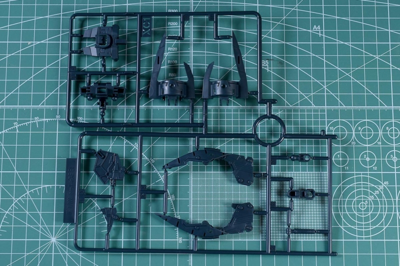 ↑ダークブルー成型色で、腕部やソール部外装、武器用ジョイントパーツなど。KPSっぽい素材。MGトールギスEWからの流用ランナーです。