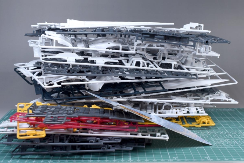 ↑ランナーを全部積むとこれくらい。まぁそこまでのボリューム感はないですね。MG Ex-Sガンダムなどのほうがもっとエグいと思います;