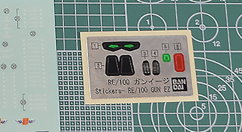 ガンイージと同じホイルシールが付属し、頭部ツインアイやセンサーやダクト、前腕のモールド穴、ビーム・バズーカのセンサーを補いますが少なめ。部分的に塗装が必要ですが、素組みでも十分なくらいの色分けが再現されています。