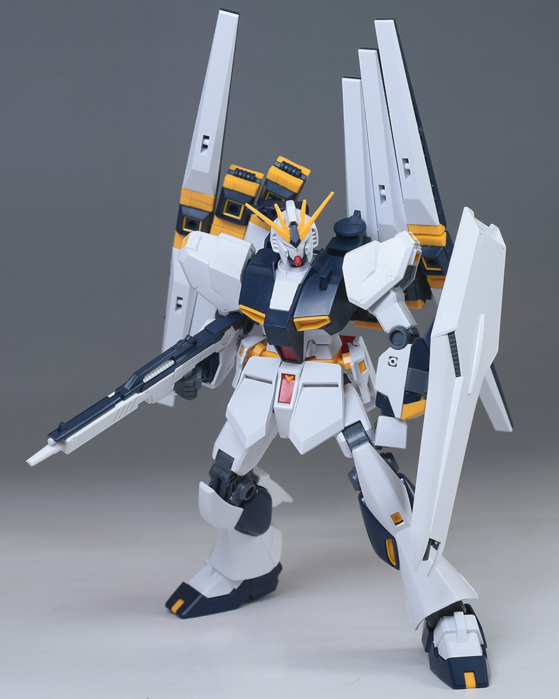 ENTRY GRADEνガンダムが経年でヘタれていると自立やポージングが難しくなってくるので、その場合はパーマネントマットバーニッシュなどで上手く関節を補強してから装備させるとよいかと。