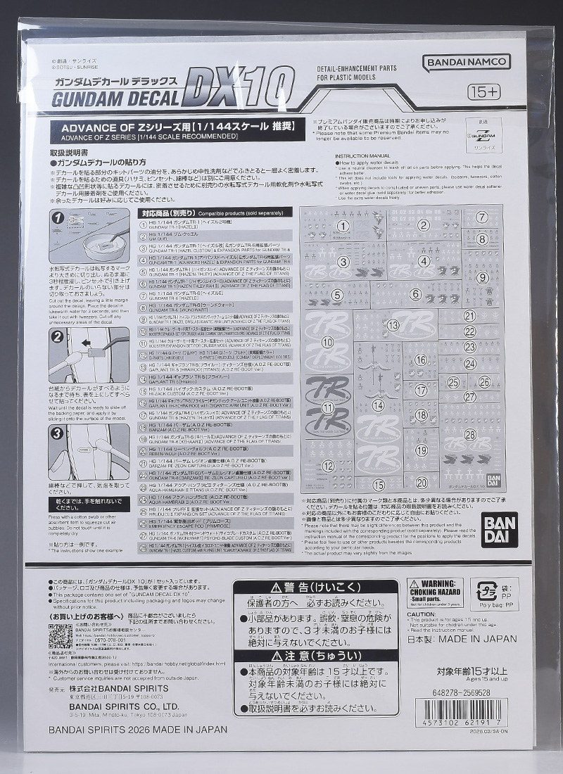 今回はガンダムデカールDX10 ADOVANCE OF Zシリーズ用のレビューをご紹介します!
