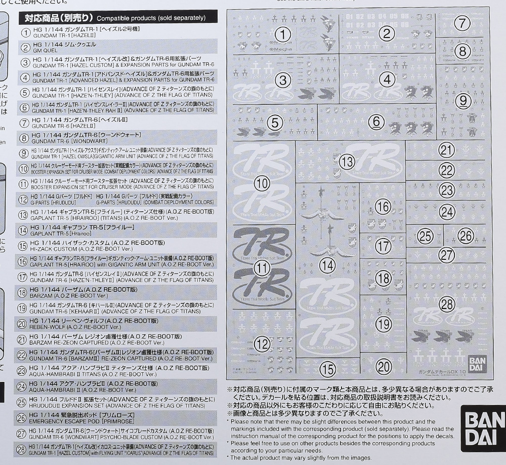 プレバンで発売されているガンプラカスタマイズ用アイテム「ガンダムデカールDX」にADOVANCE OF Zシリーズ用が追加されたので買ってみました。