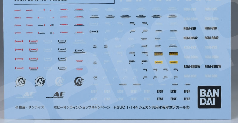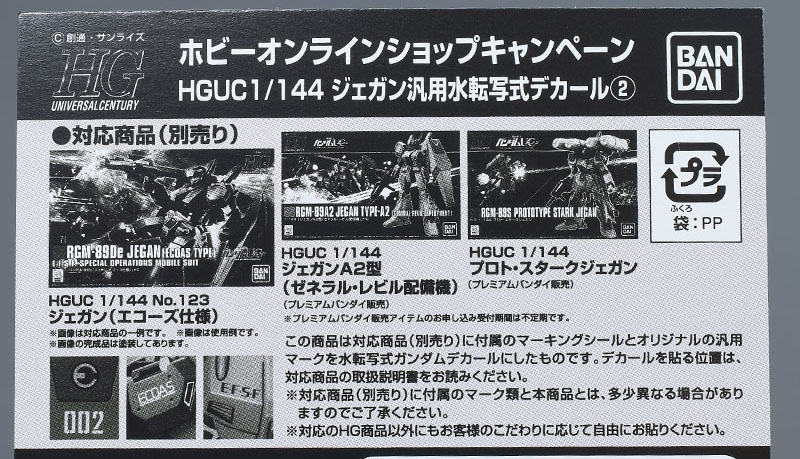 ちなみに今回貰えるデカールはこれまでのジェガンキャンペーンのHGUC 1/144 ジェガン汎用水転写式デカール①」とは別物。「HGUC 1/144 ジェガン汎用水転写式デカール②」になります。
