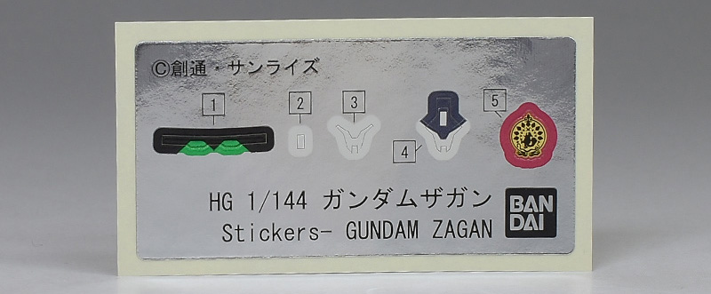 ツインアイはモールドの上からシールを貼っての色分け。額のモールドもシールで色分けしますが、1枚のシールでまとめて補う方法と、モールドごとに2枚のシールを貼る方法が選択できます。今回はモールドごとに分けました。
