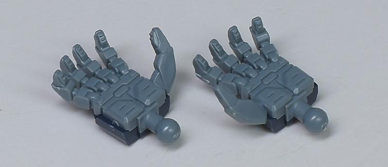 平手に組み替えて。平手は指先が深く曲がった状態で力強さを感じさせるデザインになっています。内側のモールドもきめ細かく、メカメカしい雰囲気があって良いですね。ハンドパーツは一般的なHG(バルバトスなど)よりも一回りほど大きめ。