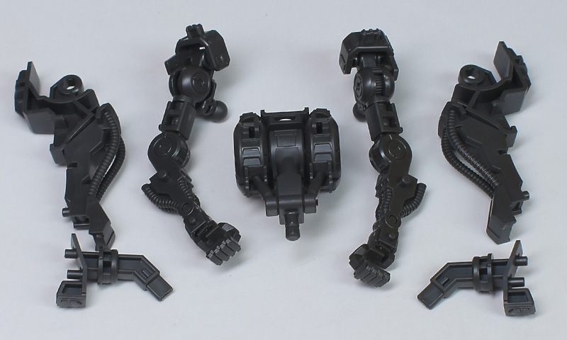 ダークブラウンの内部や関節、アームパーツなどにはKPS素材が使用されています。ABSは不使用。他もPS素材なため、塗装時の破損などはあまり気にせずに済みそうです。