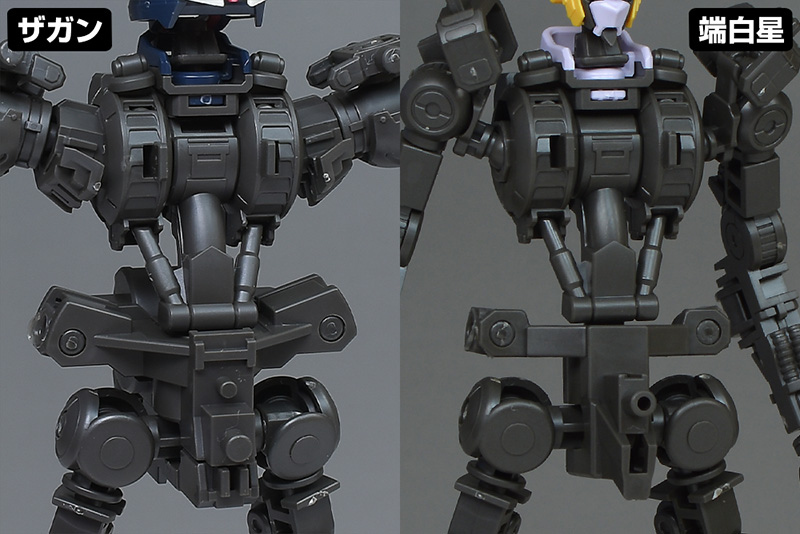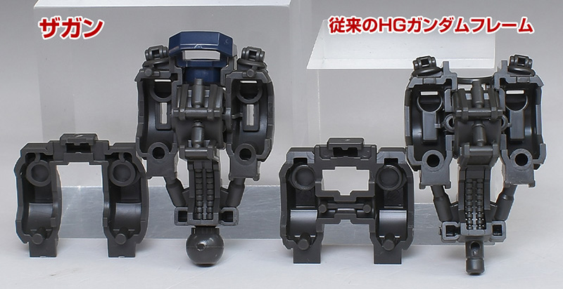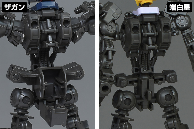 胴体内部フレームを端白星のものと並べて比較。胸部と腹部の形状は殆ど同じですが、胴体部は全体がザガン用に新造されています。
