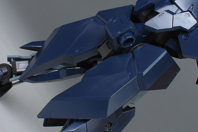 以上です。ザガン特有の重厚な機体形状、容姿がなんとも言えないヒール感を醸し出しています。各部装甲も裏打ちパーツがきっちりと造形されているため、チラ見しても見栄えがよく仕上げてありますし、細部まで造りが丁寧で完成度がとにかく高いです。ガンダム・フレームも重厚な機体形状に合わせてアップデートされ、よりしっかりとしたポージングが楽しめるようになっていますし、総合的にみてもケチの付け所がないですね。