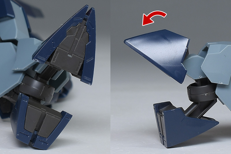 シールドプライヤーユニットの希少金属側の装甲を展開して。展開することでよりワイルドで攻撃的なポーズを取らせることができます。