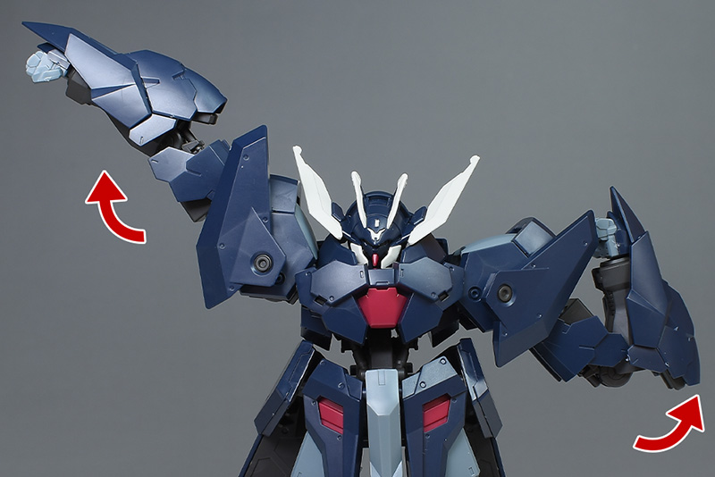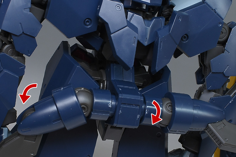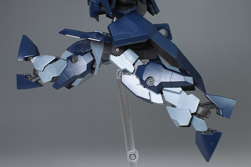 高回転するマニピュレーターによって、対象を殴りつける格闘武装「スクリューフィスト」を再現。劇中でもイシュー家のグレイズに攻撃を繰り出していました。