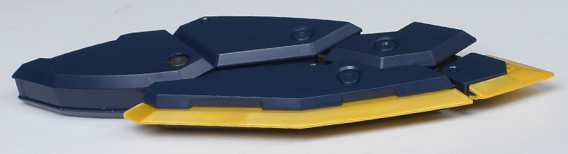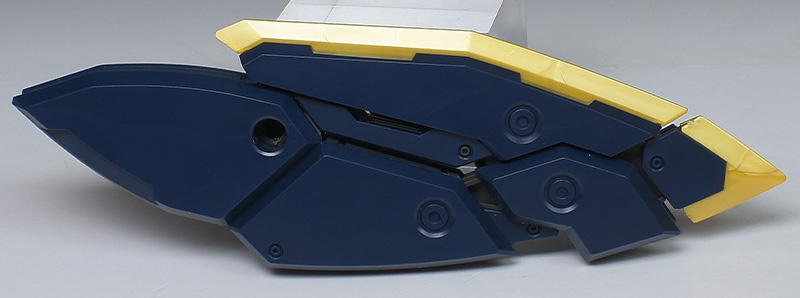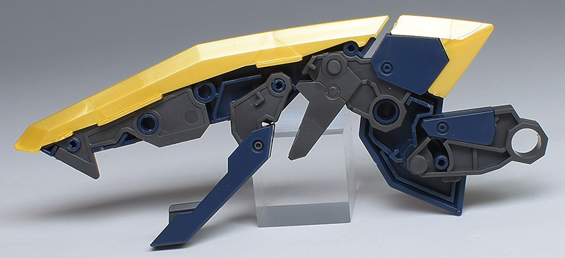 各部装甲は半分に折りたたまれており、黄色い希少金属側の装甲は幅広く展開可能。希少金属部分は黄色いパーツでの色分けです。