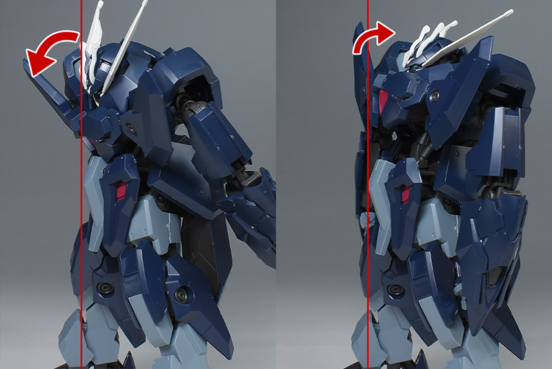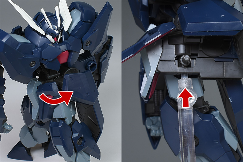 アームにしっかりとした強度があるので、ユニットは全く垂れるようなことがありません。配置するとしっかりとその位置をキープしてくれます。胸部がアップデートされていますが、シールドプライヤーユニットは腰にマウントされているので上半身への影響もないですね。