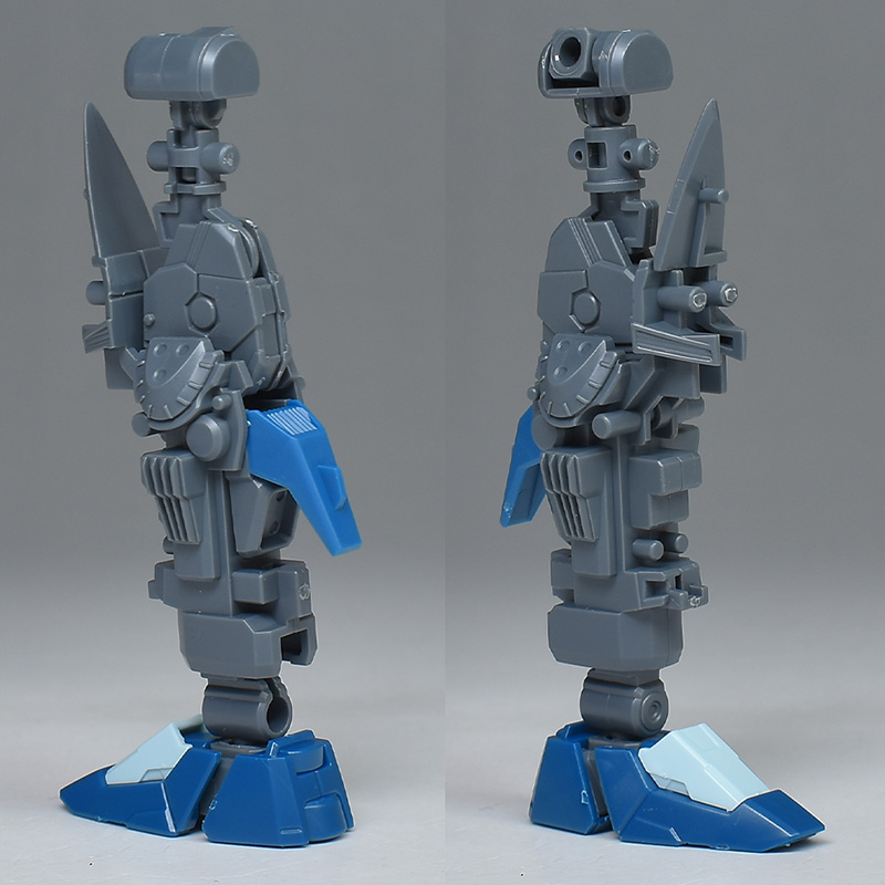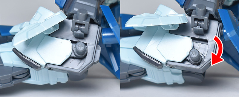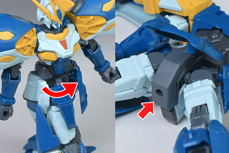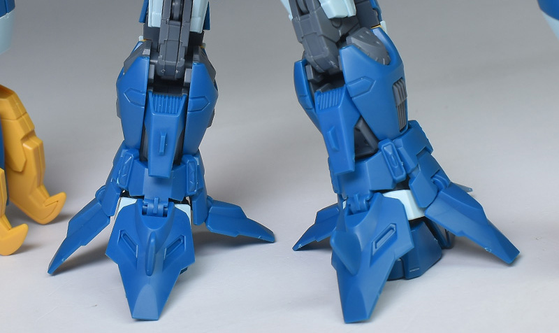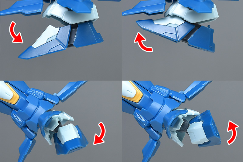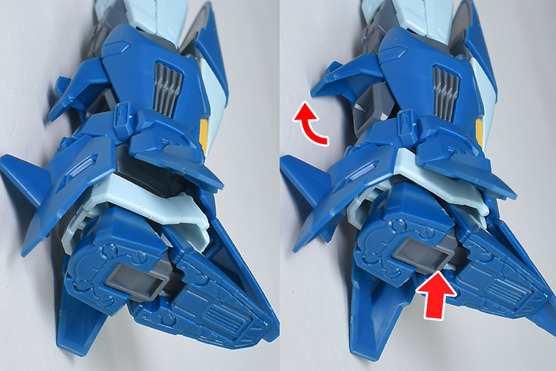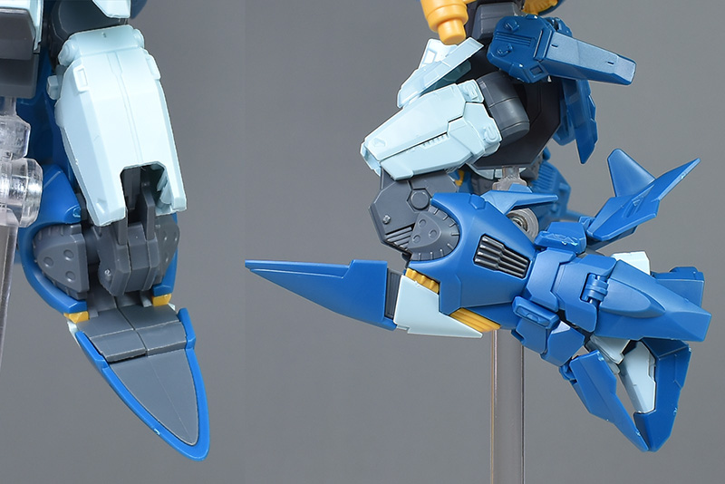 デュエルモードへの変形ギミックとして、後部装甲を引き出すことで足首が内部に収納されるようになっています。