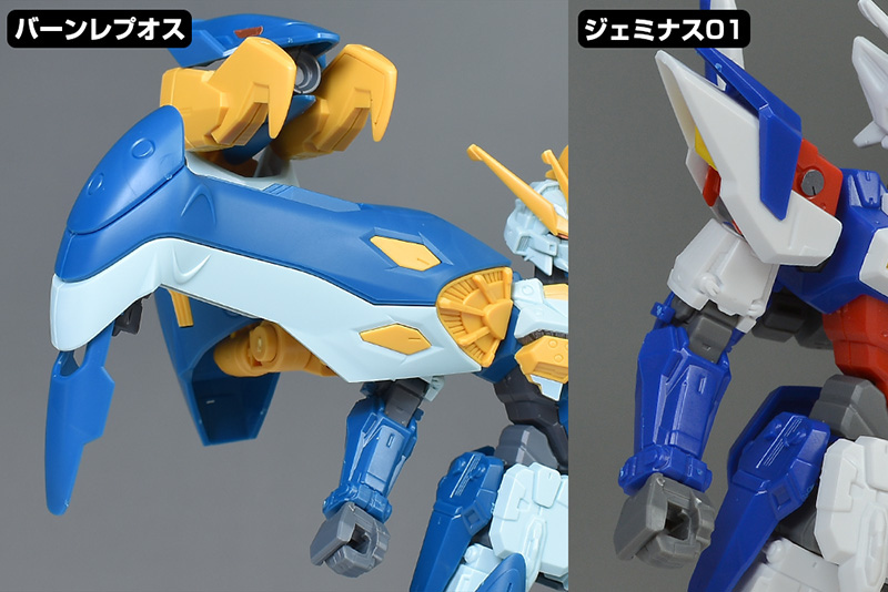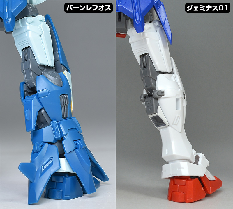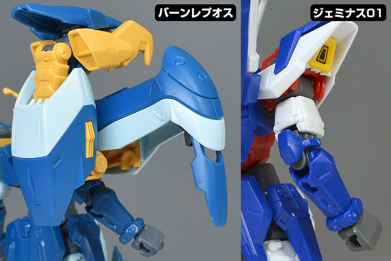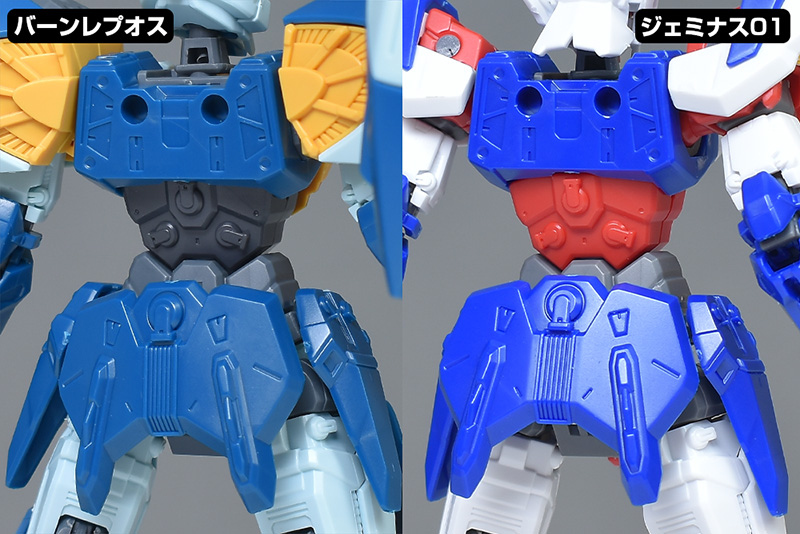 ベースキットであるジェミナス01と比較しながらバーンレプオスの各部を見ていきます。