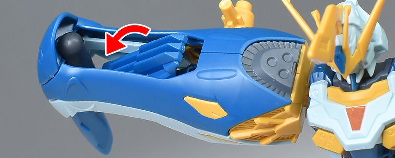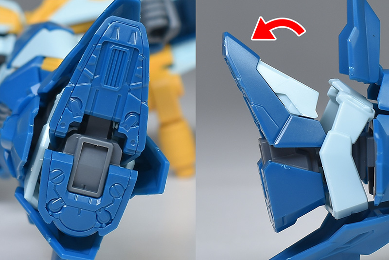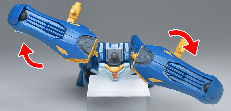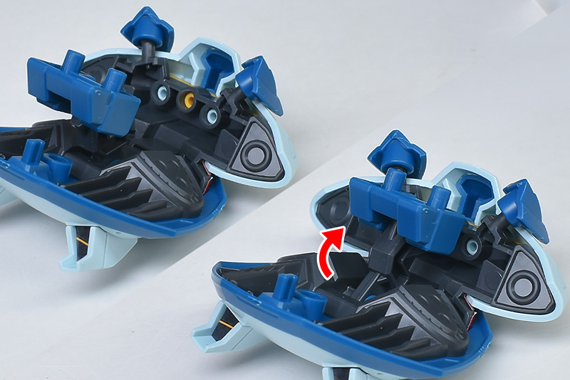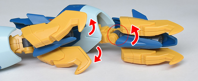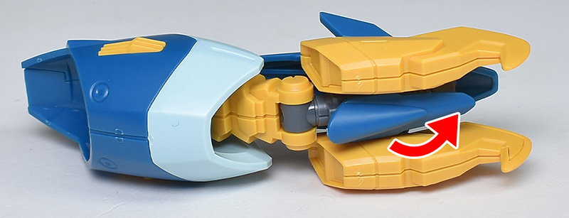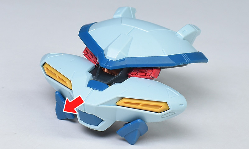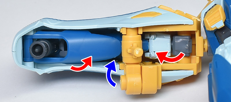 更に上部の装甲を押し込むことで、格納した腕部を引き出してMS形態に戻すことができます。なかなか秀逸で取り扱いやすいギミック。