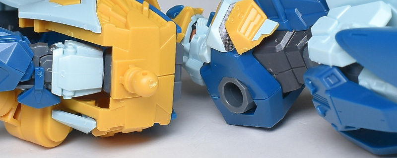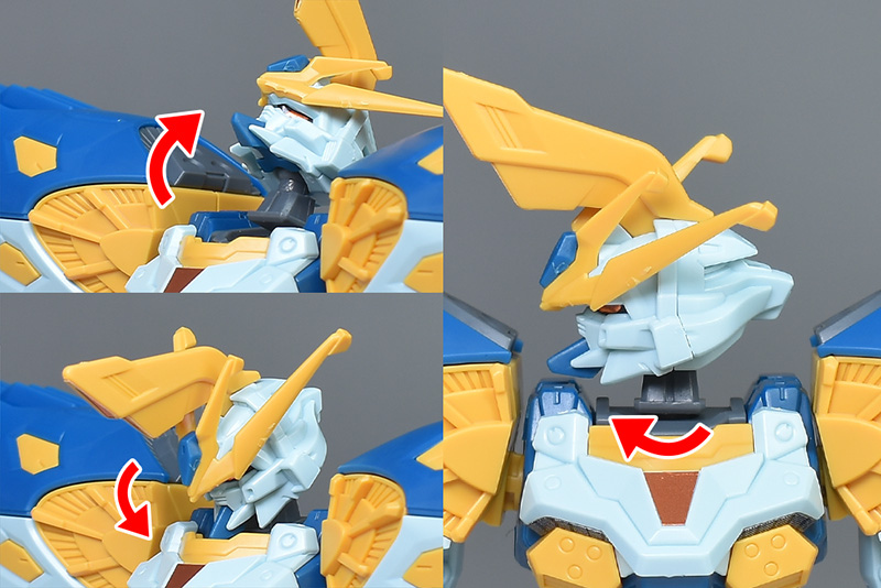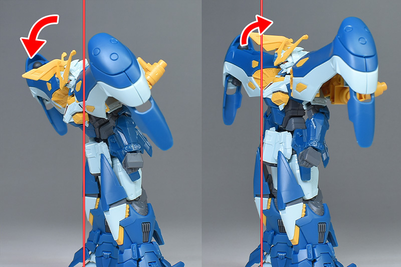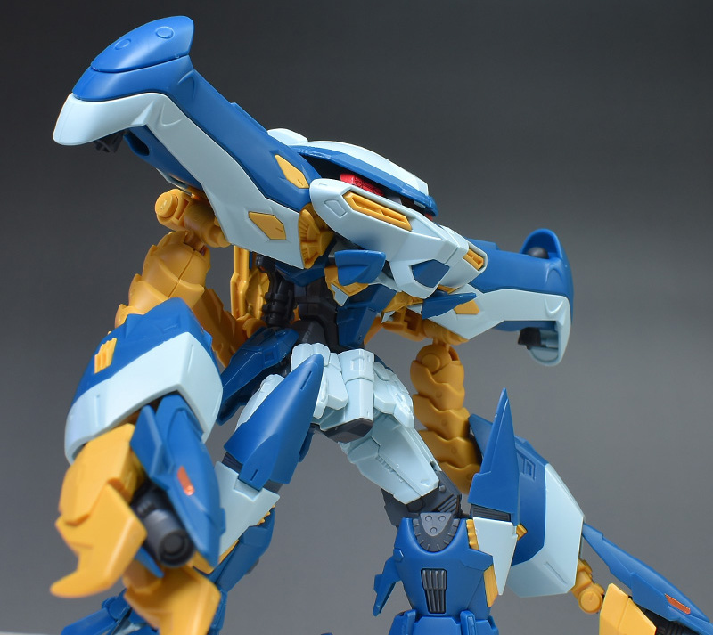 首はダブルボールジョイント型ポリキャップでフレキシブルに可動。肩は前方に展開が可能です。肩はジェミナス01ではポリキャップ仕様でしたが、このバーンレプオスでは腕部の重量に耐えられるようにするためか、KPSパーツに変更されています。