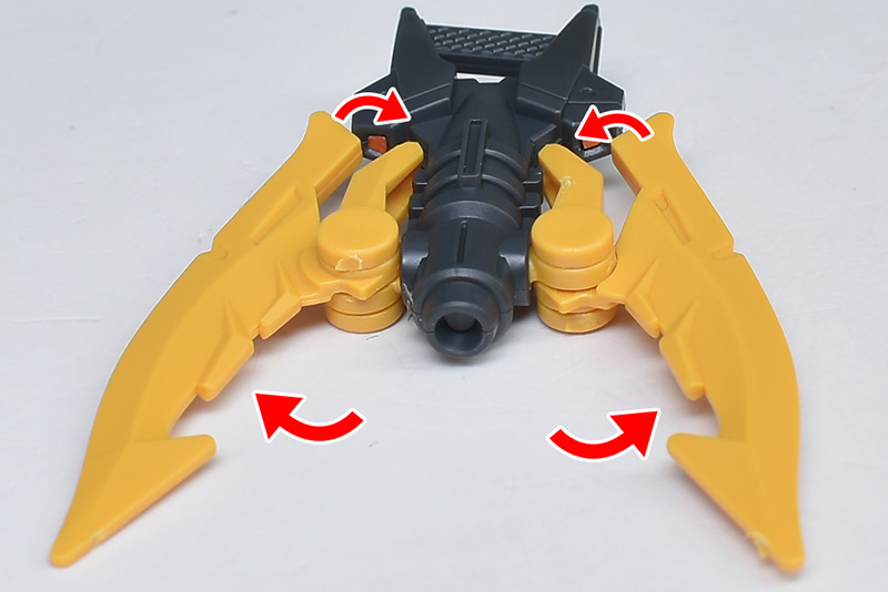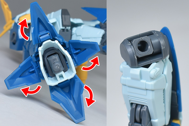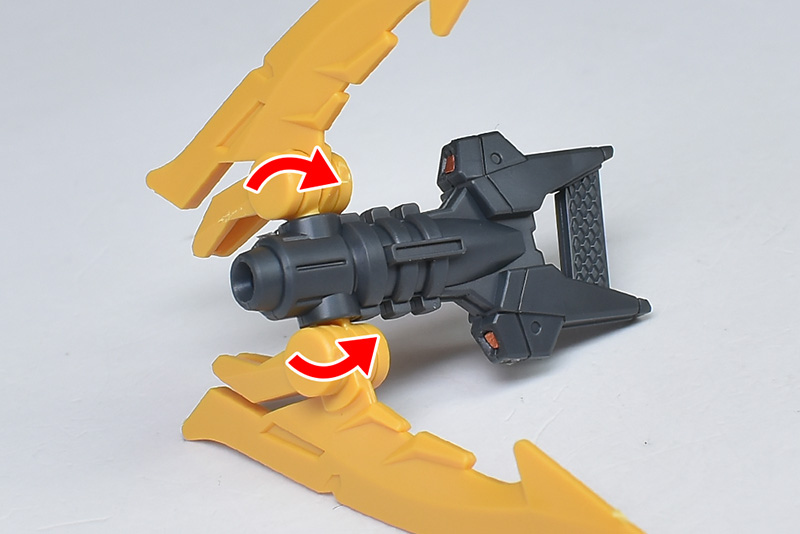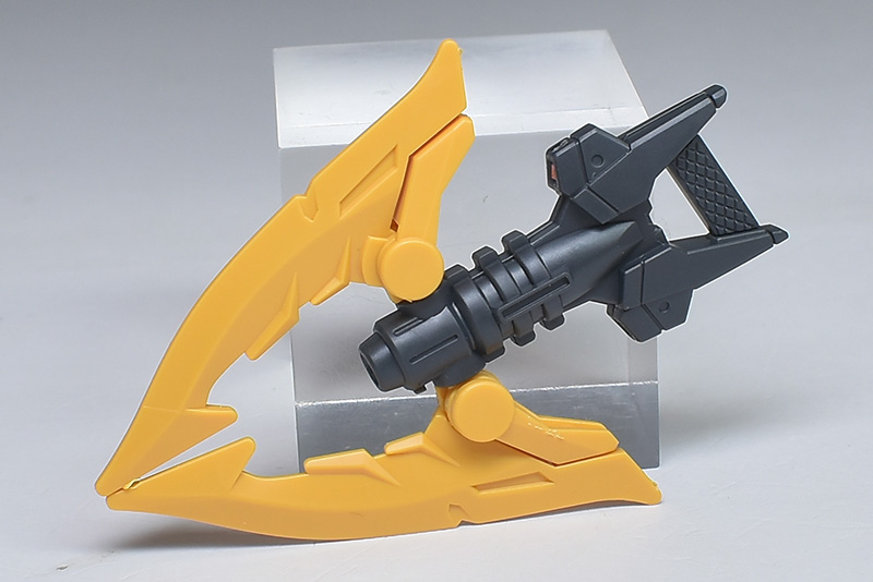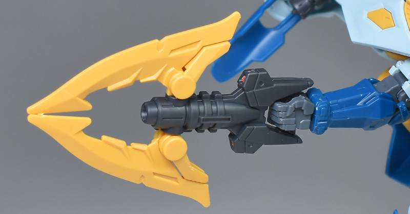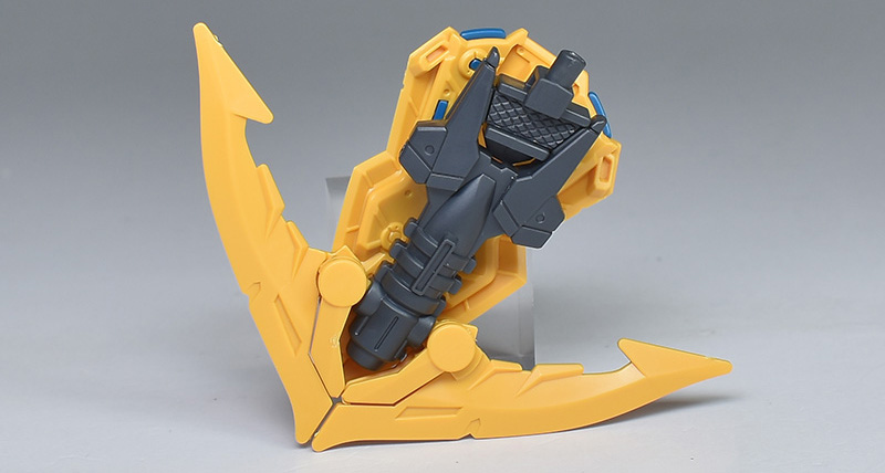 クロー中央のビーム砲も開口こそされていませんが、各部がメカニカルに造形。付属の腕部パーツを組み付けることで、デュエルモード時の延長腕部を再現することができます。腕部パーツも簡単な左右の組み合わせながら中央の合わせ目は段落ちモールド化されています。