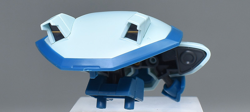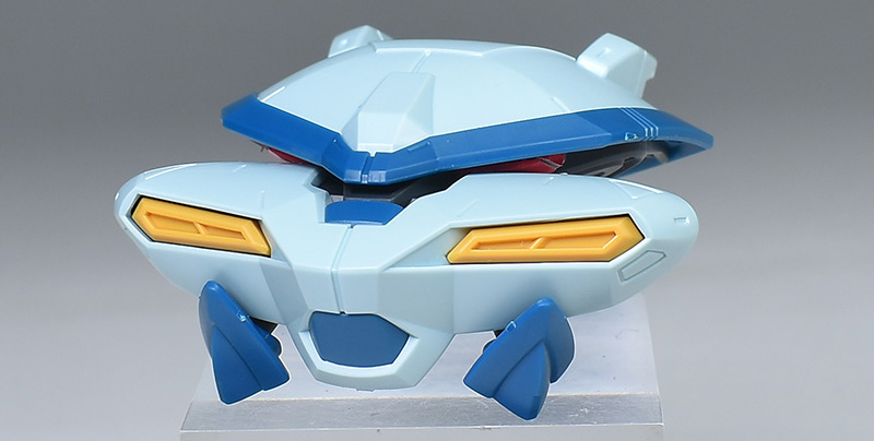 前面は細長のエアインテークや水中用MSらしい丸みのある装甲が造形。各部がパーツによって適度に色分けされています。
