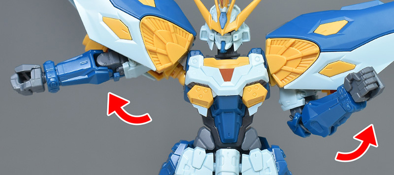 ただし展開することで腕部の重量が増すため、肩が垂れやすくなるので注意です。肩ボールジョイントをしっかりと押し込むか、ある程度補強してポーズを取らせたほうがポーズが取らせやすいかと。