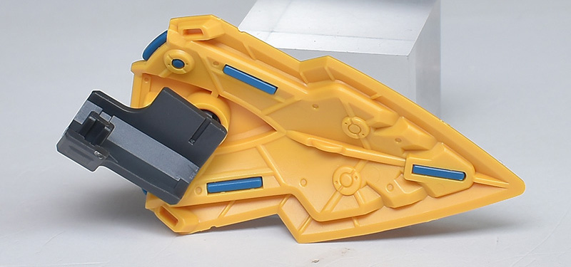 シールドはジョイントパーツを外すことで背部ユニット内側にマウントすることができます。個体差かもですが、取り外す際に内側の接続ダボがねじ切れそうになったので、慎重に外すようにしたほうが良いかと。