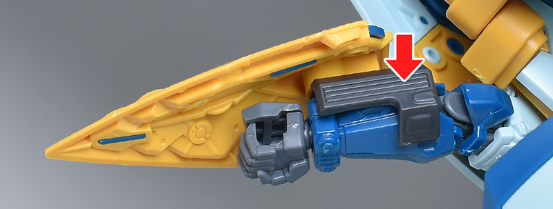 EMFシールドはジョイントパーツを前腕に組み付けて装備します。こちらもダボが太めでまずまずの固定強度があります。なので特にポージング時にはずれてしまうようなことはありませんでした。
