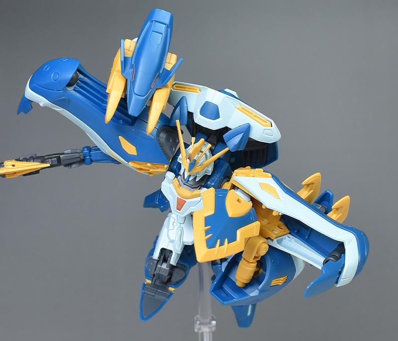 2020年5月に発売されたHGガンダムジェミナス01のパーツを流用しつつ、デュエルモードへの変形機構を持つ特徴的な機体形状が新規パーツを用いて再現されています。