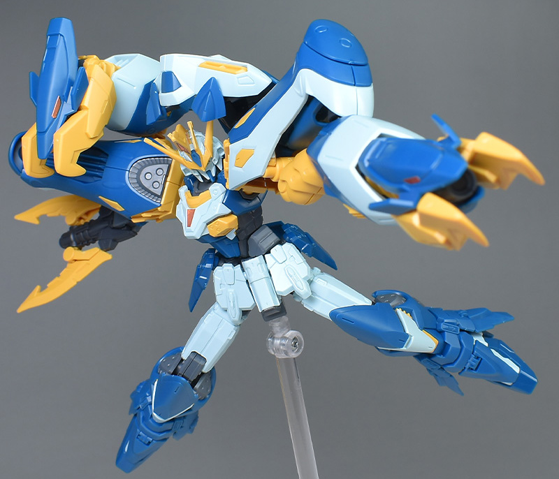 スタイリッシュなフォルムのMS形態、ワイルドなデュエルモードと、対称的とも言える容姿を両立したキットで遊びがいがありますし、G-UNITシリーズならではのメカニカル感もモールドなどでうまく表現されています。その他変形ギミックなど、様々な部分で満足度が高いキットになっているのが良いですね。
