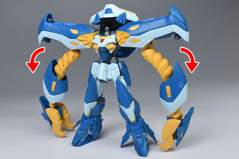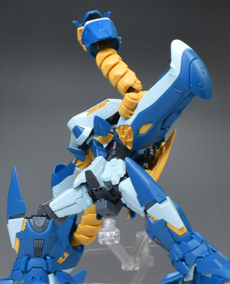 クローが展開するので、開いて挟み込むような表現ができるのが面白いですね。肩を前後にロールさせる際、背部のユニットと両肩のゴレムクローが干渉しやすいので注意。うまく交わすようにして可動させます。