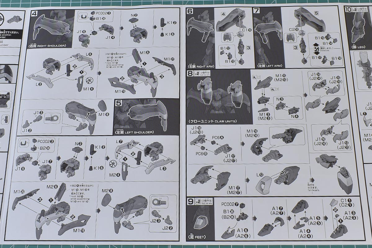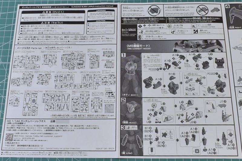 以上、説明書でした。これまでのアスクレプオスやエルオーブースターはPSで関節部分のみ柔らかめのKPSでしたが、このバーンレプオスは外装にもKPSが使用されています。なので他のキットに比べて若干ですが、軽量でパーツのかみ合わせも良かったりします。もちろん経年でどの程度ふらつきが出てくるかはわかりませんが、質は高まっている気はしますね。