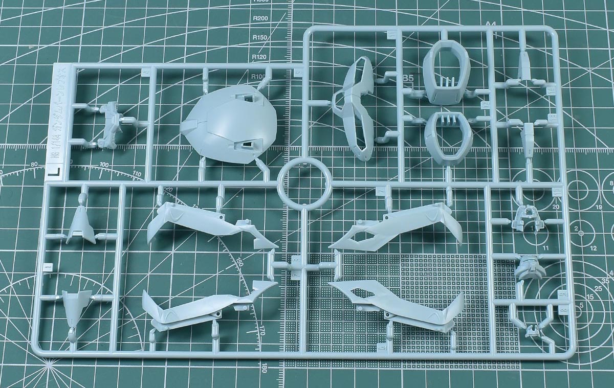 ↑Lランナー。ライトブルー成形色で、頭部や胴体部、肩部、脚部、背部ユニットやゴレムクローパーツなど。