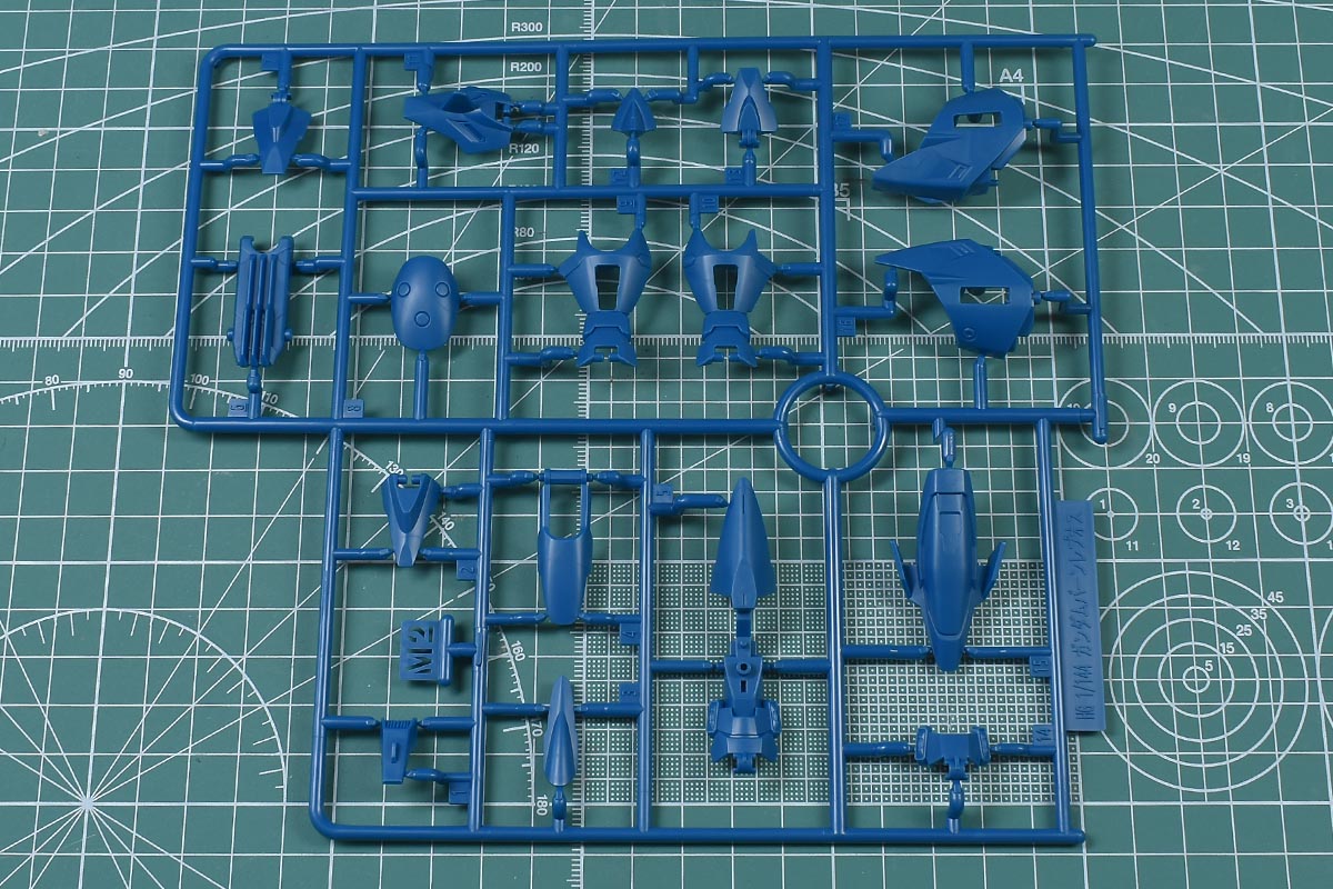 ↑M1、M2ランナー。ブルーグリーン成形色で、肩部や脚部、ゴレムクローパーツなど。KPS素材です。