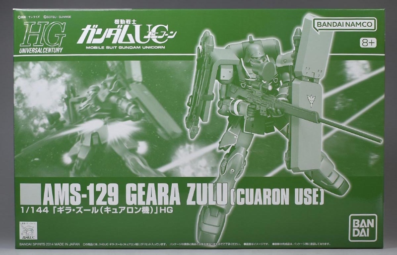 パケ絵は2体のギラ・ズール(キュアロン機)が掲載。手前が左手にシールドを装備し、ビームスナイパーライフルを両手で構える姿、背景がビームホークを右手に構える姿となっています。キュアロン機は首相官邸付近でのユニコーンガンダム襲撃シーン以外に目立った活躍はなかったので、このイラストはおそらくイメージかなと。