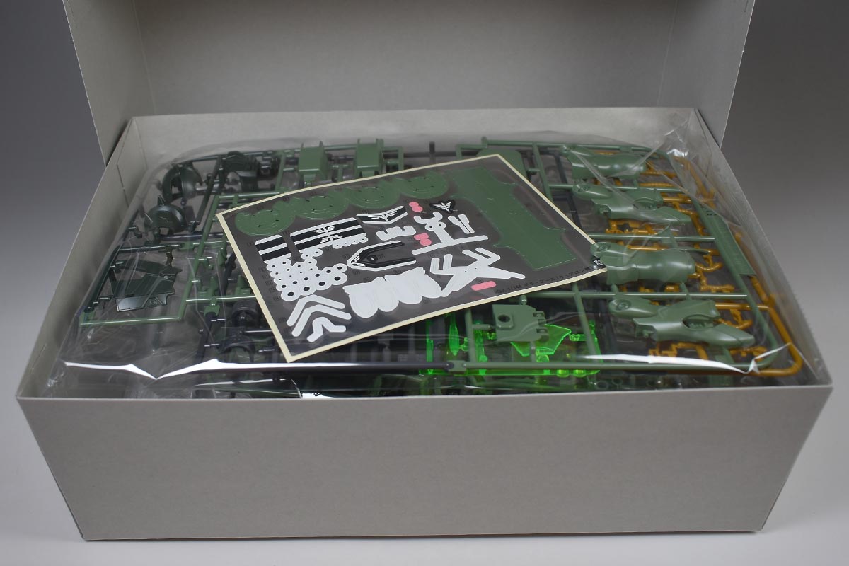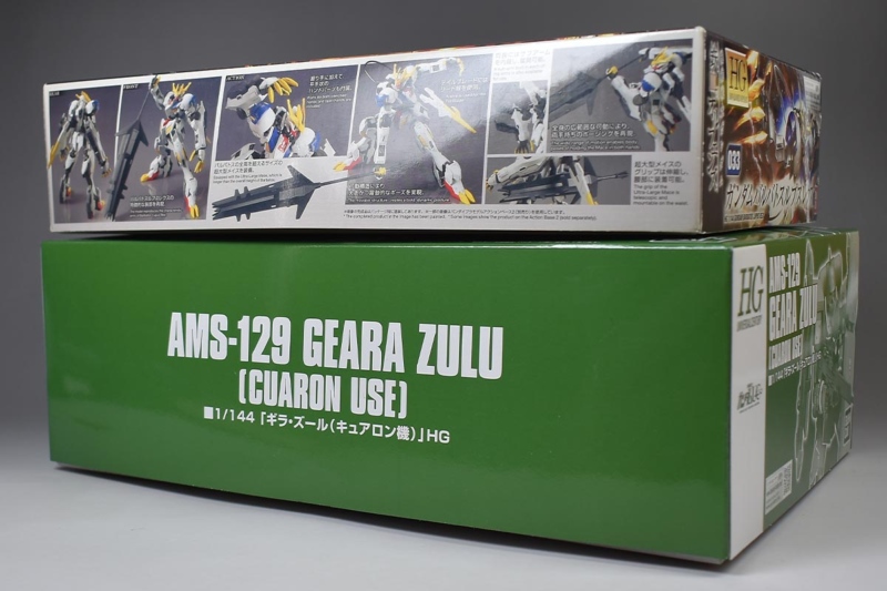 パッケージサイズは一般的なHGよりも縦横が1cm、高さが2~3cm程度大きめ。HGとしてはそこそこの大きさです。ギラ・ズール自体がやや大きめのキットなのと、武装類が豊富に付属すること、ギラ・ズールや親衛隊用の余剰パーツが多数付属するなどでこの大きさになっているようです。
