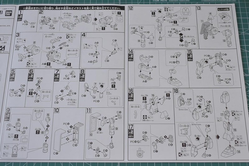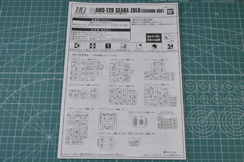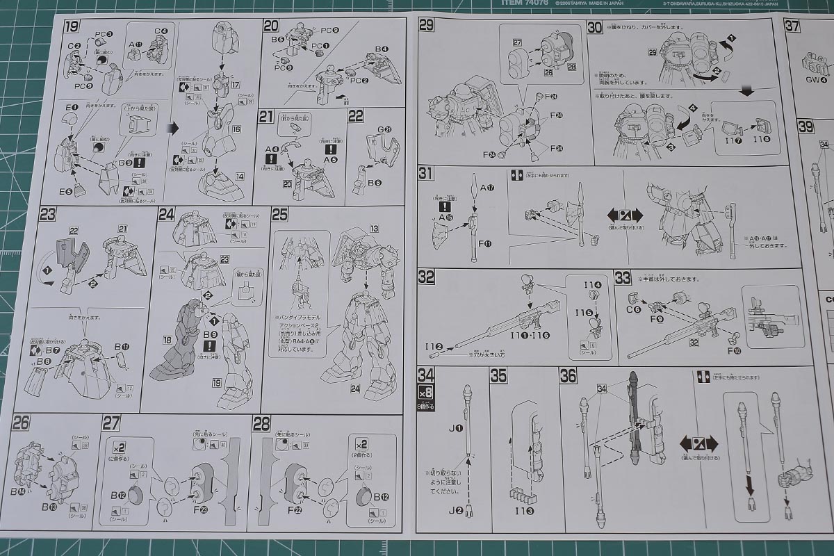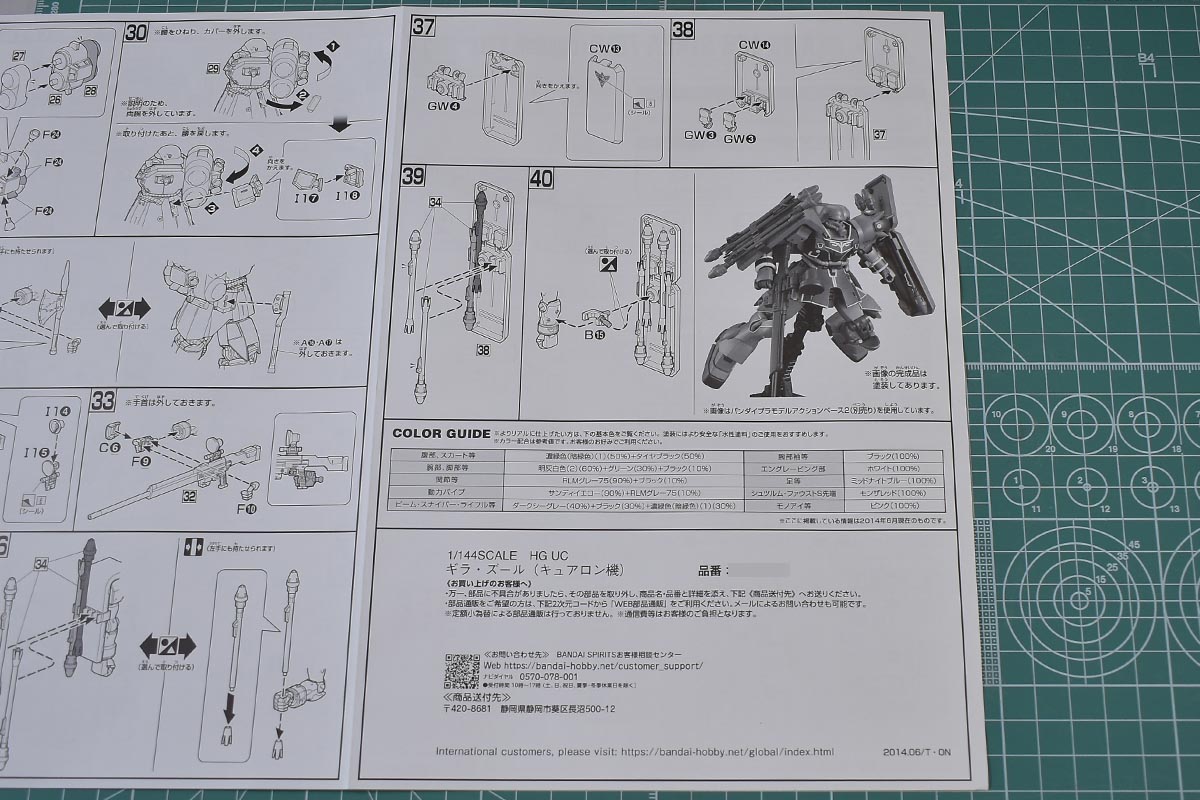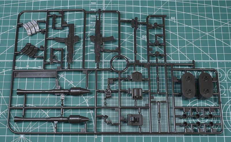 以上、説明書でした。構造は通常のギラ・ズールと親衛隊仕様との混合。それにギラ・ドーガ用(流用ではありません)のシールド、シュツルム・ファウストS、ビームスナイパーライフルといった多数の武装類が付属しています。武装類は比較的簡易的な構造ですが、それらを積載することで重武装仕様のギラ・ズールを表現しています。