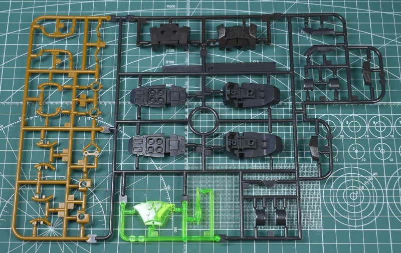 ↑Gランナー。グリーンとダークグリーンのイロプラランナーで、胴体部や肩部、大腿部パーツなど。