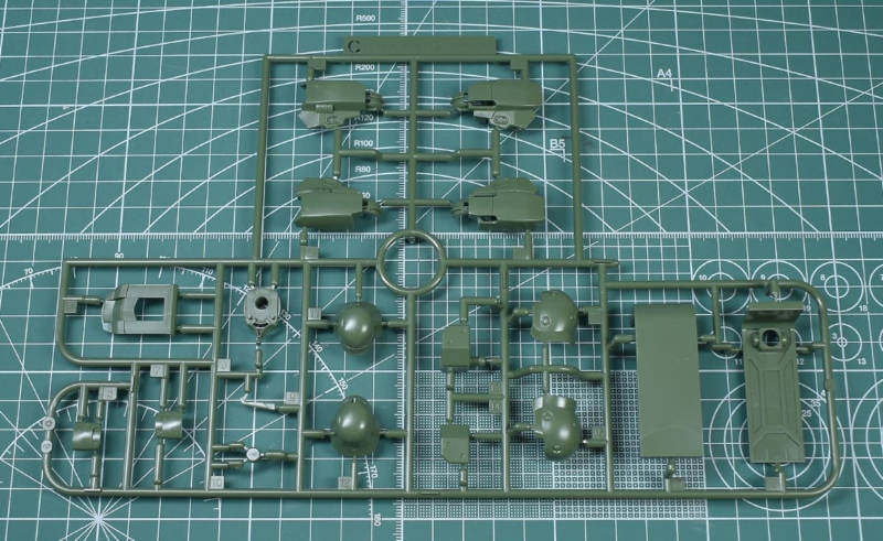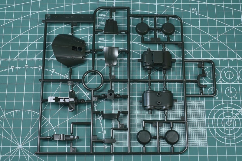 ↑Cランナー。グリーン成型色で、頭部や胴体部、腕部、脚部外装パーツ、L字シールドパーツなど。