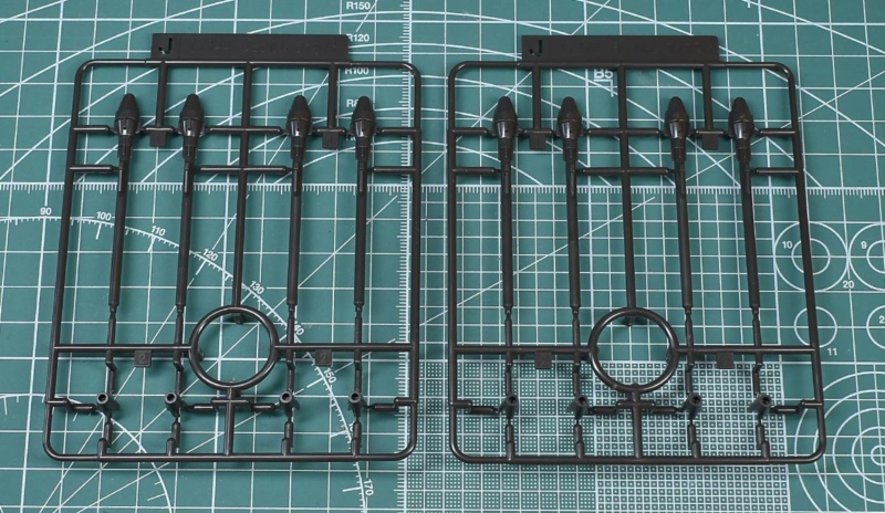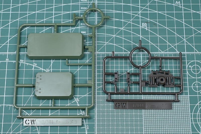 ↑CW、GWランナー。CWはグリーン成形色、GWはダークグレー成形色で、ともにシールドパーツです。