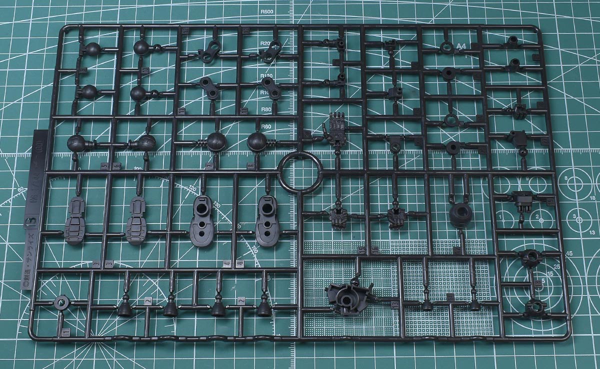 ↑Bランナー。ダークグレー成型色で、胴体部や腕部、脚部などの内部・関節パーツ、ハンドパーツなど。KPS素材です。こちらもHGザク(GQ)からの流用。