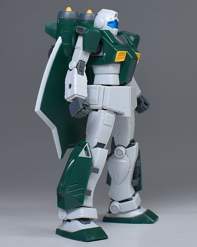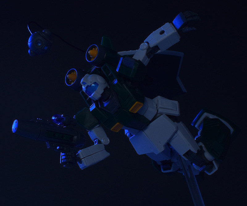 HGジム・ナイトシーカー※1をベースに、背部にアクア・パックやバラストタンクを持つ特徴的な機体形状、ソナーガン、センサーポッドといった武装類が新規造形で再現されています。※1 HG THE ORIGIN版ジム系の内部パーツを使用。
