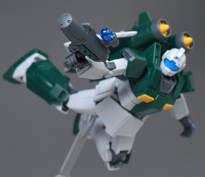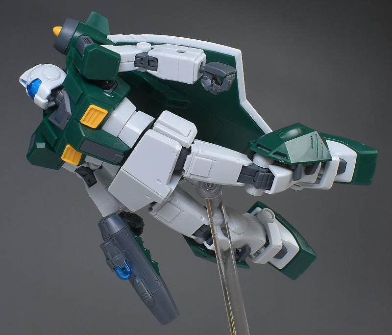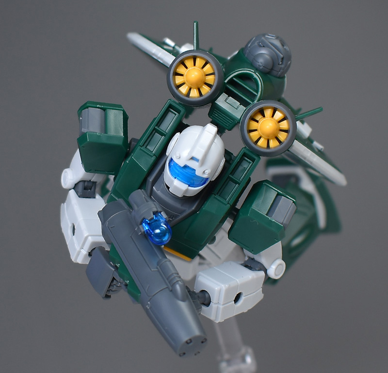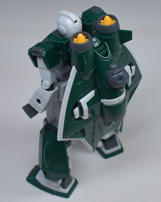 以上です。ベースはジムですが、背部アクア・パックの存在感が大きく、個性的な機体に仕上がっていて良いですね。色的にも、一見すると亀っぽく見えるのが面白いです。造形的にも完成度が高く、水中翼の展開ギミックやセンサーポッドの射出状態が再現できるなど、各種ともかなり凝った造りになっていると思います。